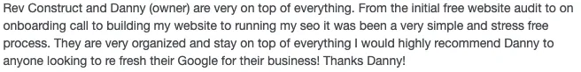 Rev Construct is a marketing agency. We do not sell a business opportunity, “get rich quick” program or money-making system. We do not guarantee success because everyones business or industry is different. We do not make earnings claims, efforts claims, or claims that our programs will work for everyone. All material is intellectual property and protected by copyright. Any duplication, reproduction, or distribution is strictly prohibited. We make no representation regarding the likelihood or probability that any actual or hypothetical investment will achieve a particular outcome or perform in any predictable manner.
